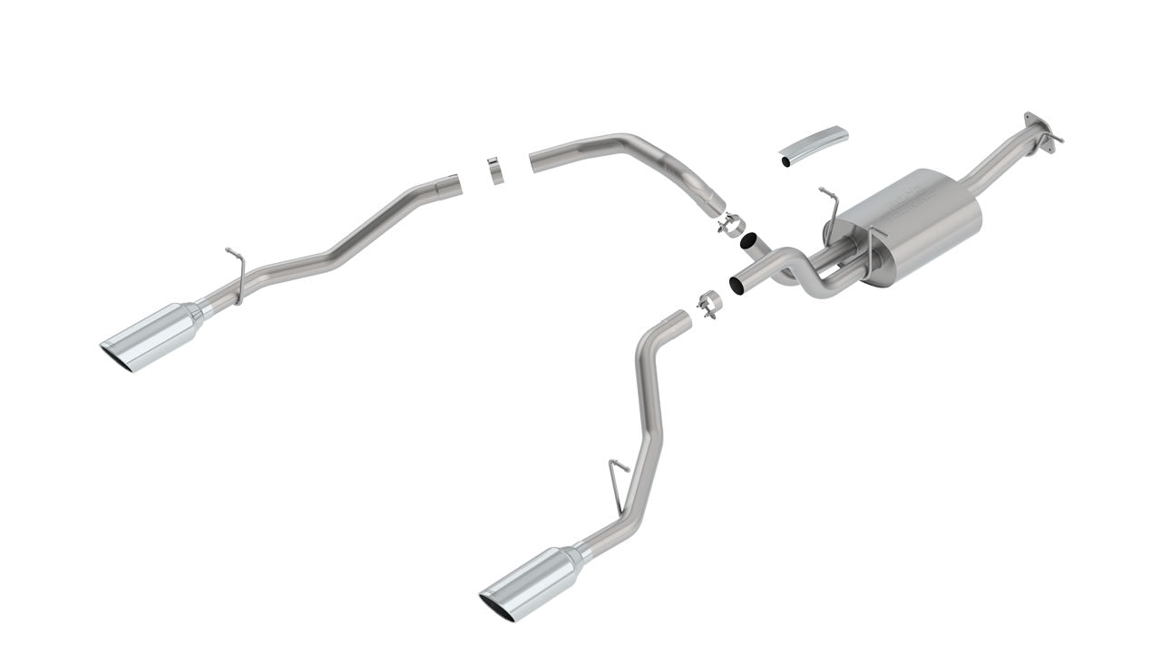 Fits through the factory bumper cut-outs (bumper has notches on the bottom). Includes the Rebel. Does NOT fit Ram Classic. This system features bright chrome on T-304 stainless steel tips. BORLA® Cat-Back™ and Axle-Back multi-core technology is designed to unleash hidden horsepower. Increased exhaust velocity adds power, driving excitement, fuel economy, and the distinctive BORLA® Sound of Power respected by motoring enthusiasts everywhere.