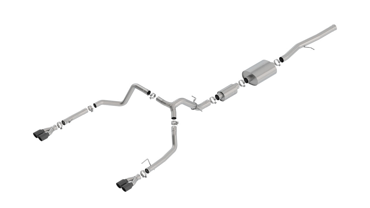 EXCEPT ZR2 & AT4X models.Factory Split Rear Exit Vehicles ONLY. This system features a black chrome finish on T-304 stainless steel tips. Using BORLA® Stainless Steel Polish p# 21461 is NOT recommended with these black chrome tips. We suggest cleaning the tips with hot water and a microfiber cloth. Add Adapter 60706 for Crew Cab with Standard Bed (6' 7") 157" Wheelbase vehicles. Replace the small muffler behind the primary muffler in the BORLA® "S-Type" system with Polyphonic Harmonizer 60680 to attain the "ATAK®" sound level (louder than "S-Type"). Optional "True Dual" Cat-Back® system available, see the Related Parts section. BORLA® Cat-Back™ and Axle-Back exhaust systems feature patented straight-through and multi-core technology designed to unleash hidden horsepower. Increased exhaust velocity adds power, driving excitement, fuel economy, and the distinctive BORLA® Sound of Power respected by motoring enthusiasts everywhere.