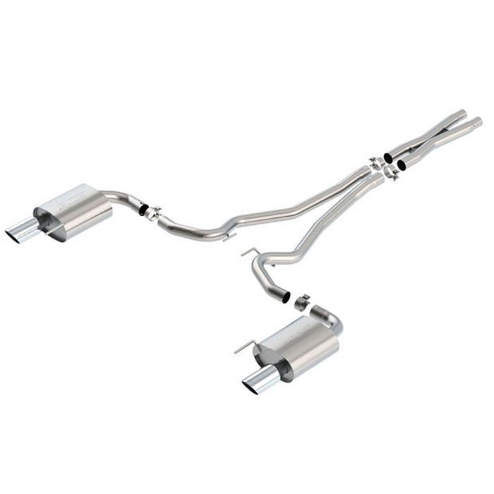 Borla introduces their brand new S-Type Cat-Back system for all 2015-2017 GT Mustangs to help alleviate this issue. Manufactured entirely out of T-304 Stainless Steel, this 2-1/2" cat-back exhaust system will give you that perfect muscle car sound. This Borla Cat-Back exhaust system utilizes an integral X-pipe that will bolt directly up to your factory catalytic converters, keeping your Mustang 100% emission compliant. And the tuned S-Type mufflers with 4" polished stainless steel tips not only sound amazing but will look great for the life of your Mustang.