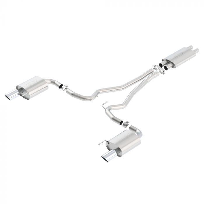 If you’re not happy with the sound pumping out of the factory exhaust on your 2015-2017 GT Mustang and are looking for a more subtle, subdued tone, this Borla 140589 2-1/2” Stainless Steel Touring Cat-Back Exhaust System with 4" Polished Tips is the perfect aftermarket flip for you. This exhaust system is designed and developed to produce a mellow and controlled sound that typically accompanies a V8 engine.
