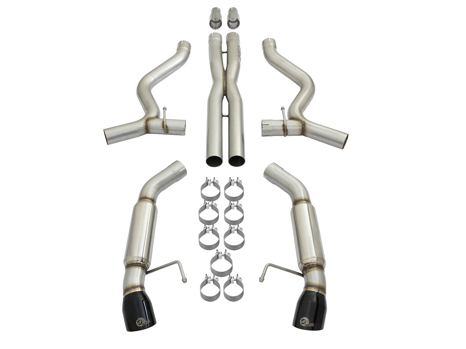 Finishing off this unique exhaust system are dual, aFe laser etched, 4" gloss black 304 stainless steel tips for an aggressive style.